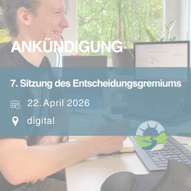 Das Entscheidungsgremium der LAG Rhein-Ahr kommt zu seiner 7. Sitzung zusammen. Am Mittwoch, dem 22.04.2026, findet die 7. Sitzung des Entscheidungsgremiums um 18:00 Uhr online per